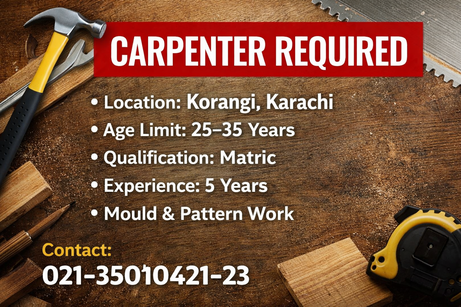 A skilled and experienced Carpenter is required in Korangi, Karachi for professional woodwork and mould/pattern making tasks.