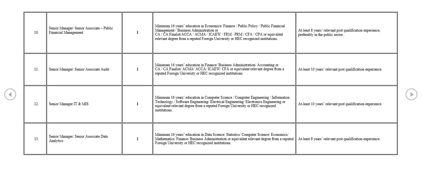 - Minimum 16 years education in Economics, Finance, Public Policy, Public Financial Management, Business Administration or equivalent