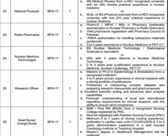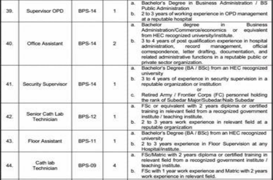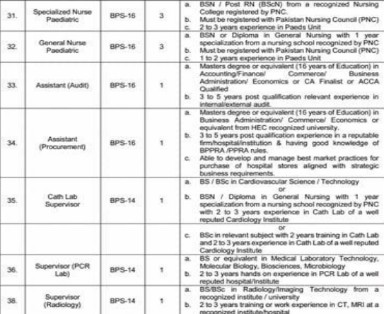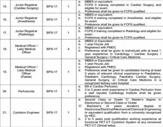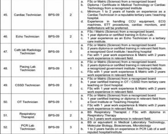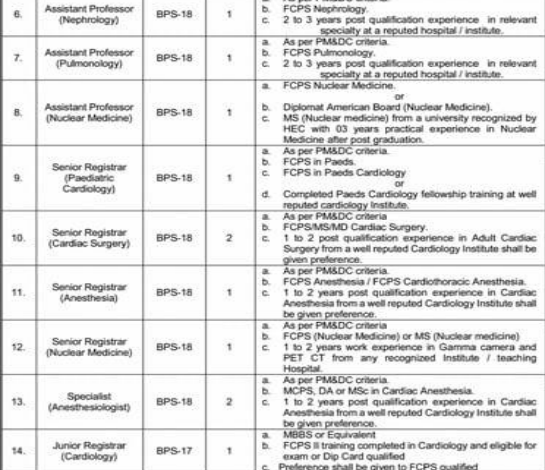 The SMBZAN Institute of Cardiology, Quetta has announced 64 contract-based vacancies ranging from BPS-19 to BPS-01.