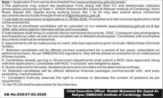 - SMBZAN Institute of Cardiology Quetta Jobs 2026 Advertisement