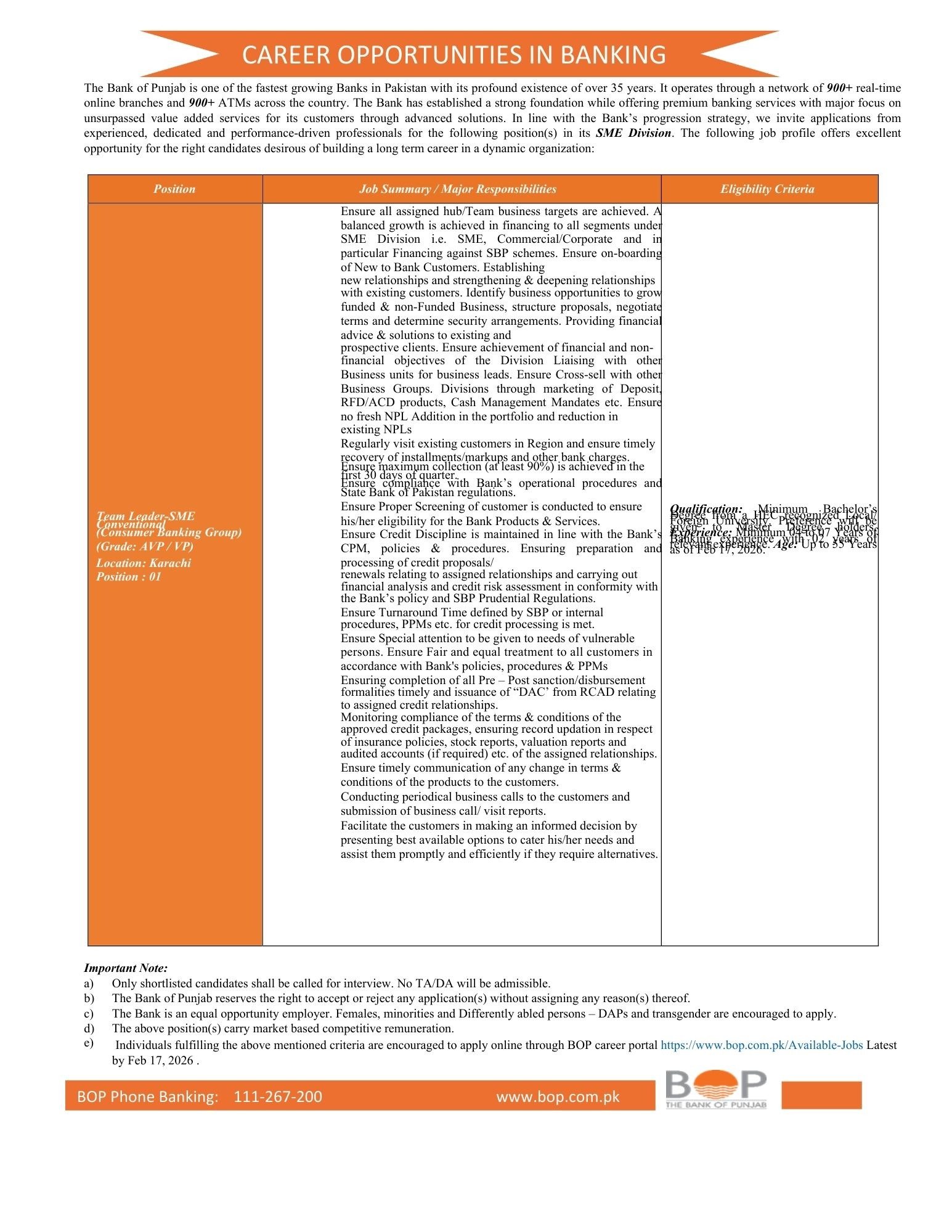1 thought on “Team Leader-SME Conventional Bank of Punjab pakistan 2026”